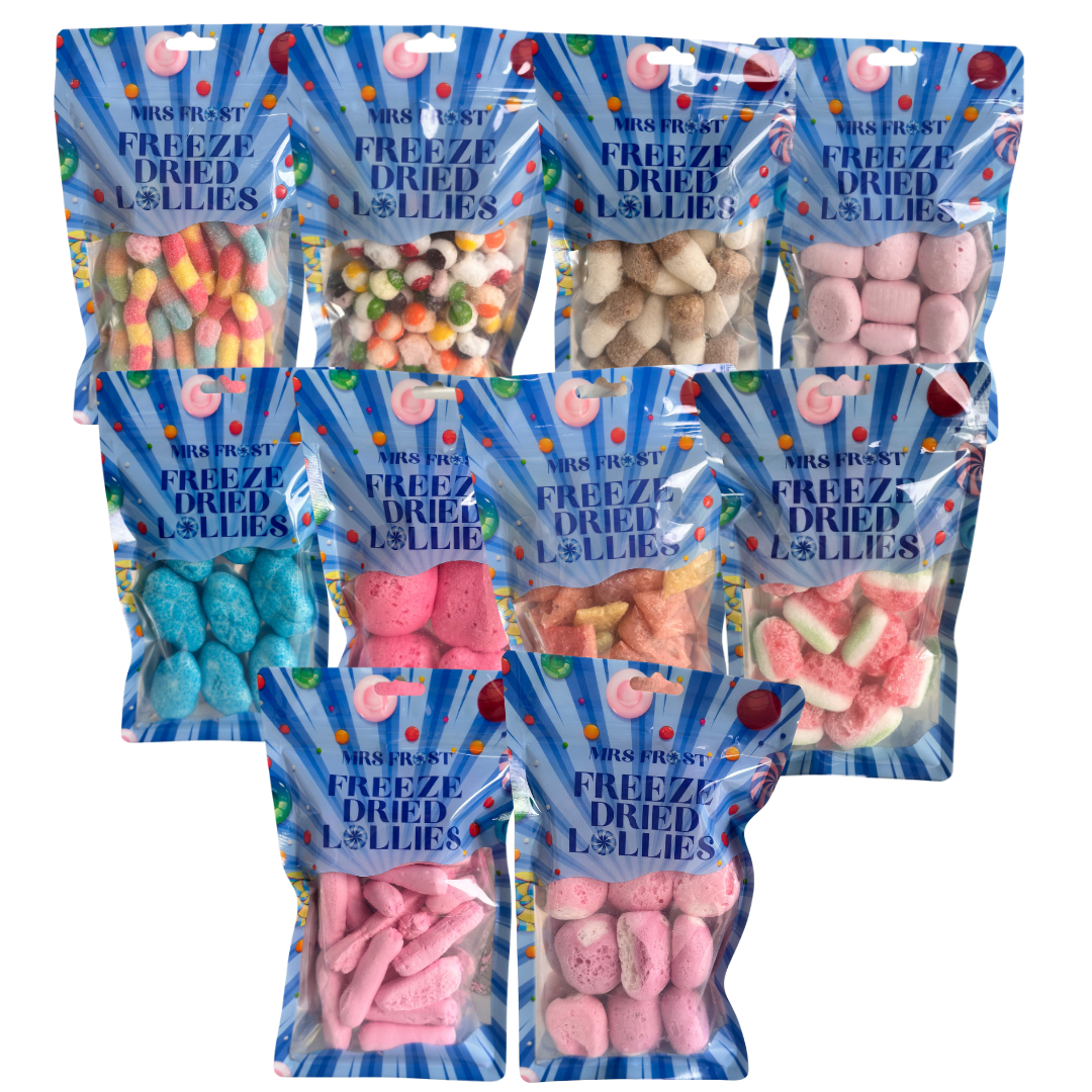 Want to try a bit of everything? In our Freeze Dried Mega Pack you'll get 10 packs of our lollies, giving you a huge variety to try!